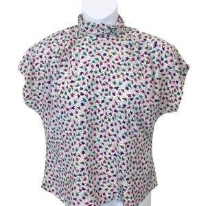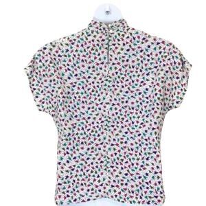 Blouse 80s Retro Secretary Career Vintage Librarian Chic High Neck Size Med