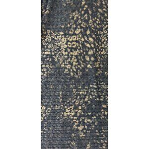 Versatile top by Peck & Peck. The fabric background color is black with smaller splashes of gold with a hint of metallic glint, crinkle fabric with texture ruffles. Great for a special occasion.