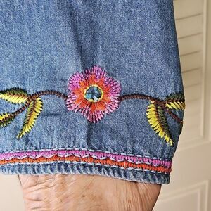 Blouse By Tantrums Denim V Neck Embroidered Front & Sleeve Blue Sz L