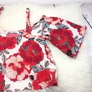 The perfect cold shoulder blouse to add to your closet with allover floral print details and spaghetti straps.