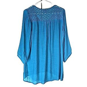 Blouse Flowey Lace Front Inset Back Tie Teal Size L