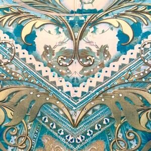 Blouse Luxurious feeling teal print. Scoop neck. Beautiful Angel sleeves. Medium