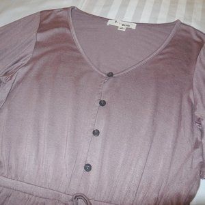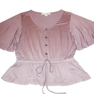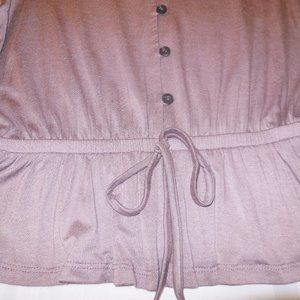 Blouse NEW short flared sleeve summer Top Knit button-down Shirt Cotton mauve