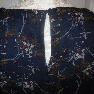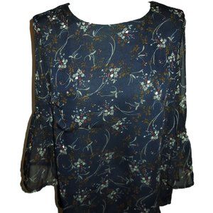 Blouse NWT SMALL Floral Chiffon Navy Blue ruffled sleeve tunic top careerwear