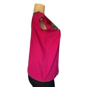 Blouse Pink Artisanal Floral Top Embroidered Mexican from Chiapas Folk Art