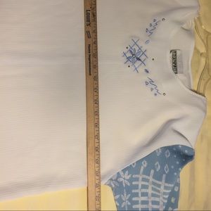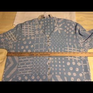 Two piece set by Peter Popovitch, size Medium. Short sleeve blouse with long sleeve over blouse. Can be worn together or separate. Blue and white. Smoke-free pet free household. Very good condition.