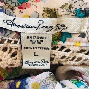 Blouse Sheer Pink Floral AMERICAN RAG Roll Up Sleeves Large