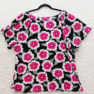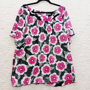 Blouse Size 26 28 Hot Pink Black Flower Power Y2K Retro Mod Festival Bloomcore