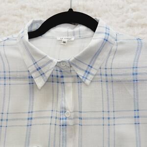 Blouse Size M Blue Plaid Office Siren Capsule Wardrobe Minimalist Long Sleeve