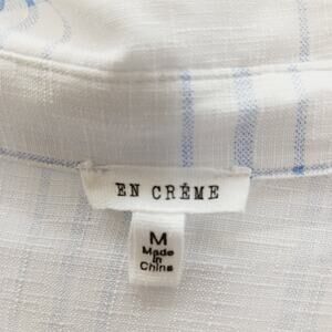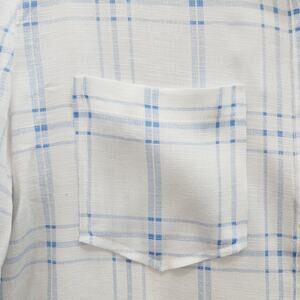 Effortlessly polished, this lightweight button-up by En Crème features a soft linen-like texture with the low-maintenance care of poly blend. The subtle blue plaid pattern adds crisp structure, while the roll tab sleeves, rounded hem, and pleated back yoke offer both function and fluidity. A wardrobe staple that bridges professional and casual.