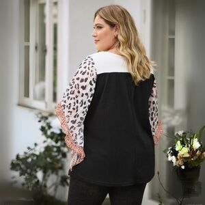 Blouse Women Boutique Colorblock Contrast Panel Flowy Leopard Ruffle Cuff Sleeve