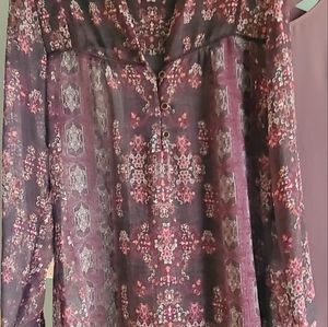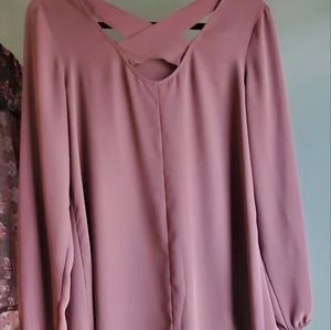 Two Maurices blouses. Size Medium. 1 Pretty black and pink design and 1 purple blouse with sexy criss cross X in the back. Very good used condition. Office/Career wear or casual every day.