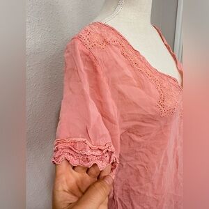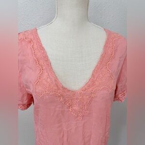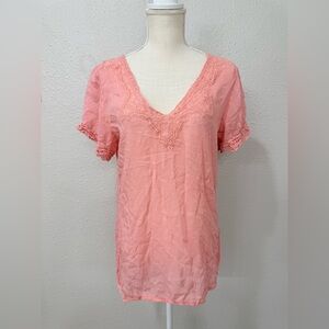 Blouse johnny was top blouse embroidered eyelet orange short sleeves small