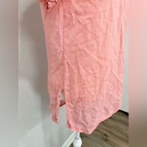 This charming pink blouse by Johnny Was features flutter sleeves and a ruffled design, offering a touch of elegance and femininity. The light and airy fabric makes it perfect for warm weather, while the flutter sleeves add a playful and romantic flair.