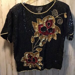 Blouse vintage sequin Joseph Le Bon silk blouse size large missing few beads on trim
