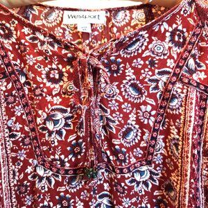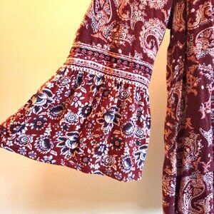 Beautiful Red/Burgundy Blouse with Tie at Neck and Bell Sleeves