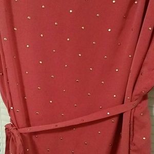 Coral colored blouse with gold studs. Comes with a belt that ties.