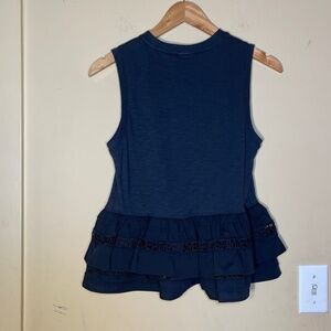 Elegant sleeveless top with a layered ruffle hem. Perfect for versatile styling.