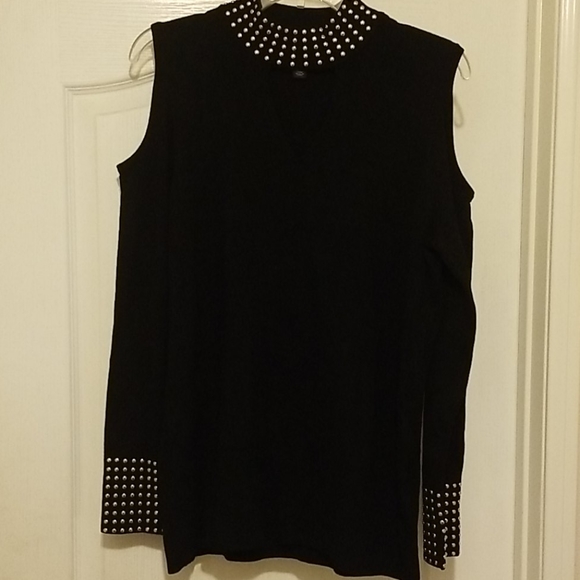 Black Sweater Blouse with gold embellishments on the sleeves and around the collar. New never worn