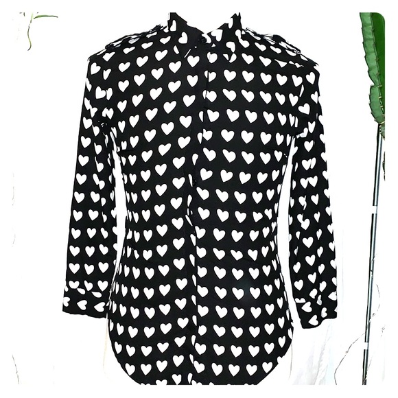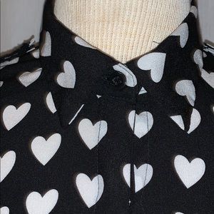 Super cute long sleeve blouses 🖤 like new 🖤 black blouse with white heart 🤍 prints