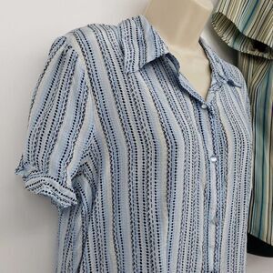 Blouses Size Lg Button Front Short Sleeves Stripes