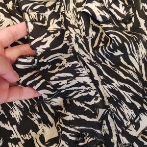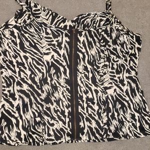 Black and white, ruffle detail in the front and zipper in the back