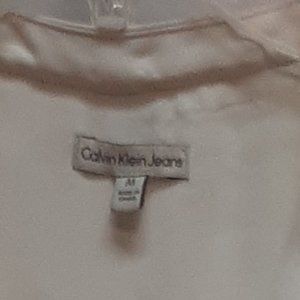 Cream long-sleeved Calvin Klein Jeans blouse. Uniquely adorn with zipper pattern around neck and front (metal). V neck. Perfect blouse for your jeans.