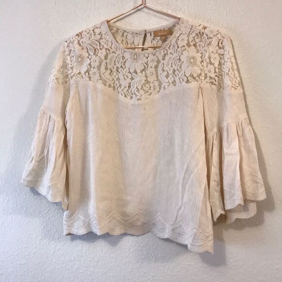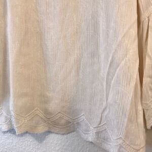 Gorgeous blouse. The pictures do not do it justice. Has light embroidery throughout and on the hem and cuff. I love the big sleeves and the crop fit. Lace detailing on top. Sleeves are 3/4 length