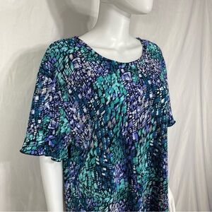 Blouseworks by Venture III Green Lavender Print Design Office Blouse
