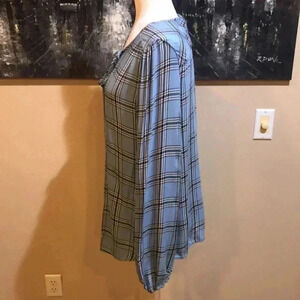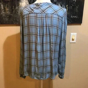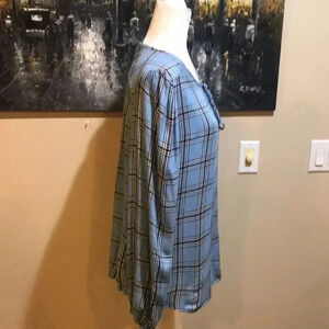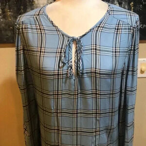Blousology Light Blue Puffed Long Sleeve Geometric Striped Design w/Tie Neck-L