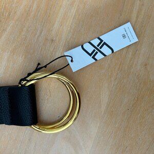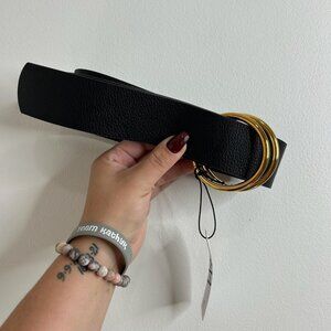 B-low The Belt Womens Black Wide Pebbled Strap Gold Tone Ring Buckle Chic NWT