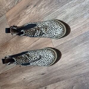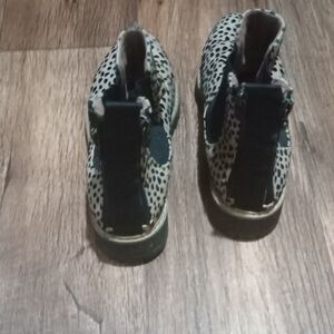 Blowfish Black and White Ankle Heeled Animal Print Boots With Cheetah Print Fall