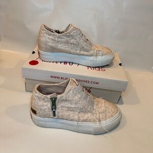 These Blowfish low top sneakers are both stylish and easy to wear! Made from soft canvas material in a lovely blush color, they feature a zip closure for quick on-and-off—no laces needed. Gently used and in good condition, they come from a smoke-free home and are perfect for casual, everyday wear.