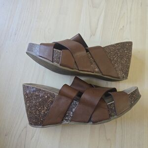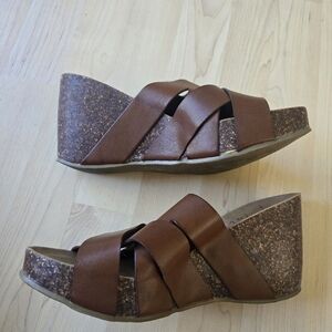 Blowfish brown wedge sandals size 9. Good condition, smoke free home. No rips, stains, tears, etc. See pictures for measurements.