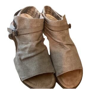 Blowfish Canvas Ruched Peep Toe Bootie Buckle Lagenlook Sandalssize 9.5