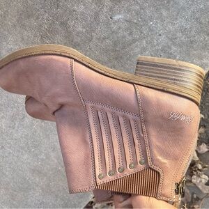 Chic Blowfish ankle booties in light brown. Stylish and comfortable with side zipper and decorative stitching.