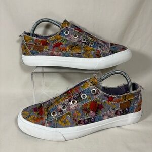Blowfish Malibu Gray Floral Distressed Slip On Sneakers - W's 8/8.5