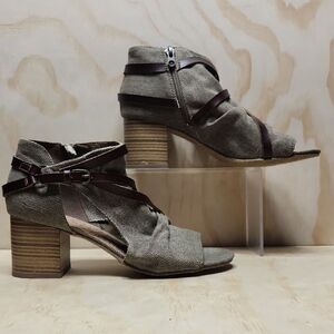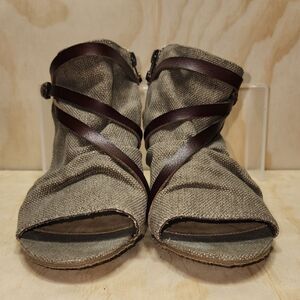 Blowfish Malibu Heeled Open Toe Shoes Tan Brown Women 9 Sandal Canvas Zipper