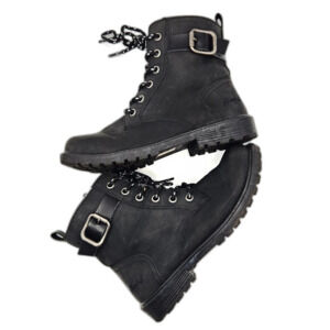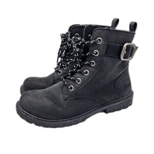 Blowfish Malibu Reyez-Ki Combat Boot Black Faux Leather Buckle Zip Girls Size 3
