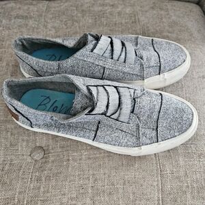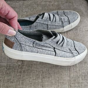 Blowfish Malibu slip on sneakers. Grey Heather. Elastic lace. Light wear. Perfect condition inside the shoes, no wear or tears inside. Only light wear on the soles. Slight scuffing around the soles of shoes.