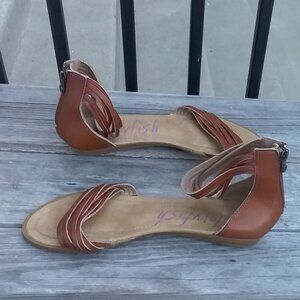 Gray Strappy Ankle Strap Sandals Zipper Back Flats Open Toe Tan Size 11 by Blowfish Malibu #0415