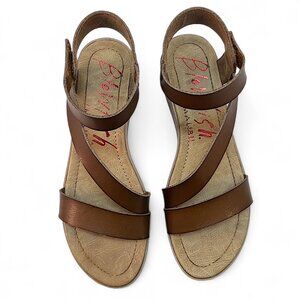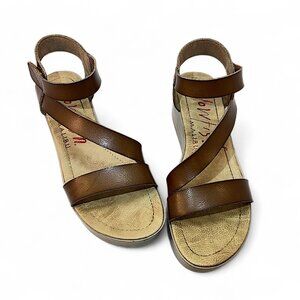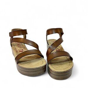 Blowfish Malibu Women's Brown Leather Platform Sandal Shoes Size 9.5