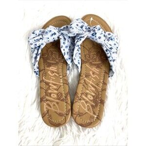 Blowfish Malibu Women's Sandals Anina Blue Floral Brown Bow Tie Slides Slip On. New with out box or tag. See pictures for more details.