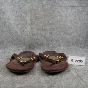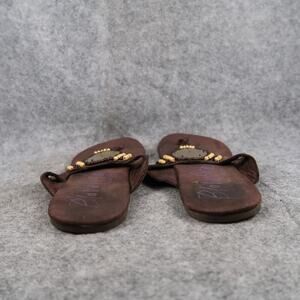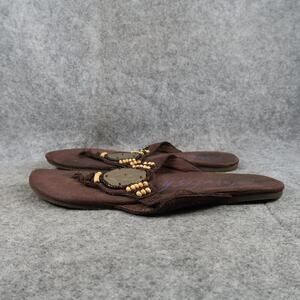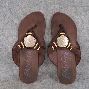 Used Blowfish Shoes Womens 8 Sandals Flip Flops Slip On Flat Brown Beaded Casual