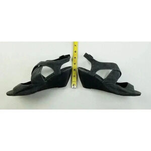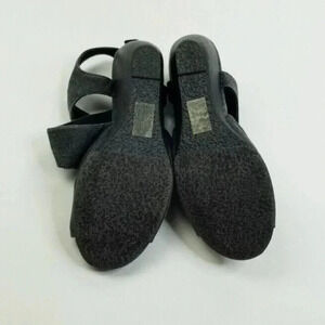 Blowfish Sz 9 Womens Charcoal Gray Denim Canvas Cross Strap Wedge Heel Slingback