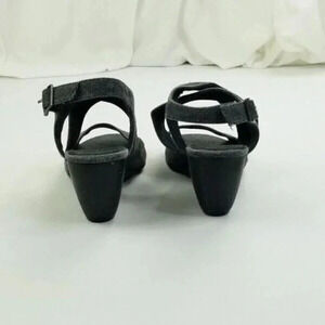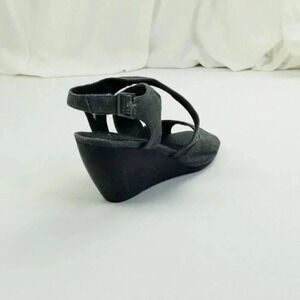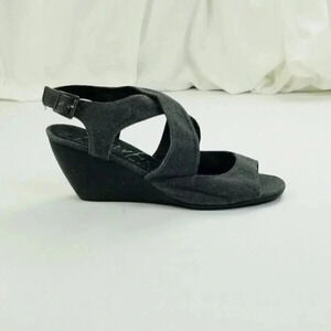 Blowfish Sz 9 Womens Charcoal Gray Denim Canvas Cross Strap Wedge Heel Slingback