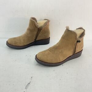 Blowfish Tan Suede Faux Fur-Lined Wedge Shearling Boots Women’s 8.5 Preowned