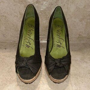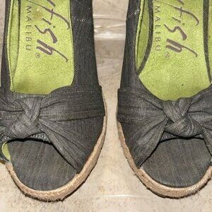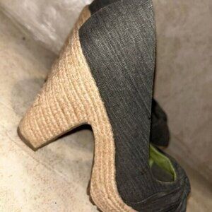 Blowfish Vanamo Gray Denim Open Toed Block Cork Heeled Sandals Size 8.5