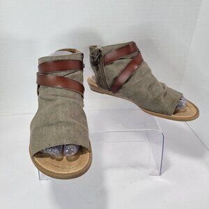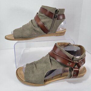 Blowfish Womens 8 Malibu Balla Canvas Micro Wedgepen Toe Gladiator Sandals Boho Bohemian Casual Summer