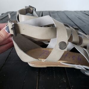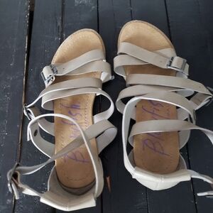 Blowfish Women's 9.5 Strappy Ankle Sandals Taupe Brown Beige Gladiator Comfort